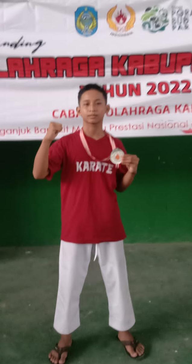 Wildan Satria Ady Ardana Kelas 7I mendapatkan juara II pada even Pekan Olahraga Kabupaten Nganjuk Cabor Karate.